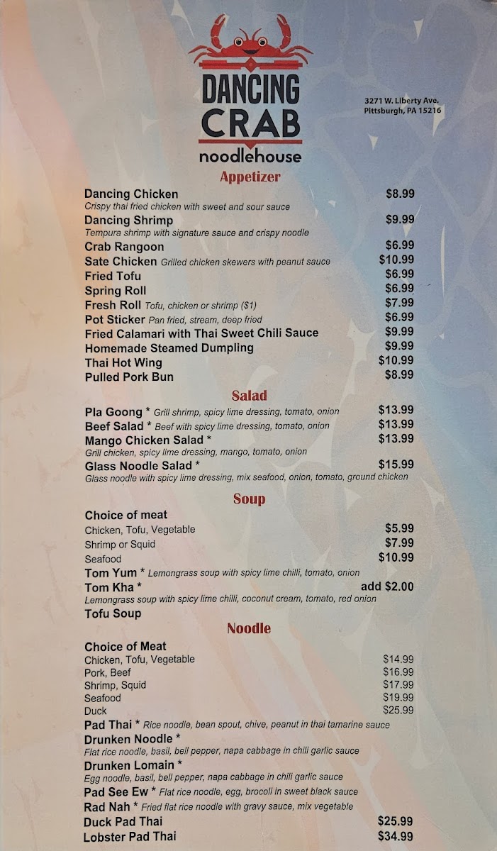 Welcome to Dancing Crab Thai, a culinary gem nestled in Pittsburgh’s vibrant dining scene. Specializing in authentic Thai cuisine, this eatery caters to diverse palates, including vegetarian and vegan options, making it a delightful spot for all diners.